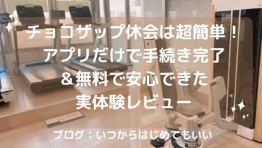 チョコザップ(chocozap) 【チョコザップ】チョコザップ休会は超簡単!アプリだけで手続き完了&無料で安心できた実体験レビュー 「チョコザップ(chocoZAP)」の【休会制度】について、実際に2カ月間休会してみた体験談を徹底レビューします。 「休会って本当に無料?」「復会は面倒じゃない?」 そんな疑問を持っている方に向けて、アプリでの簡単な手続き方法、休会中でも使えた機能、復会の流れまで詳しくお伝えします。 2025.10.09 チョコザップ(chocozap)
